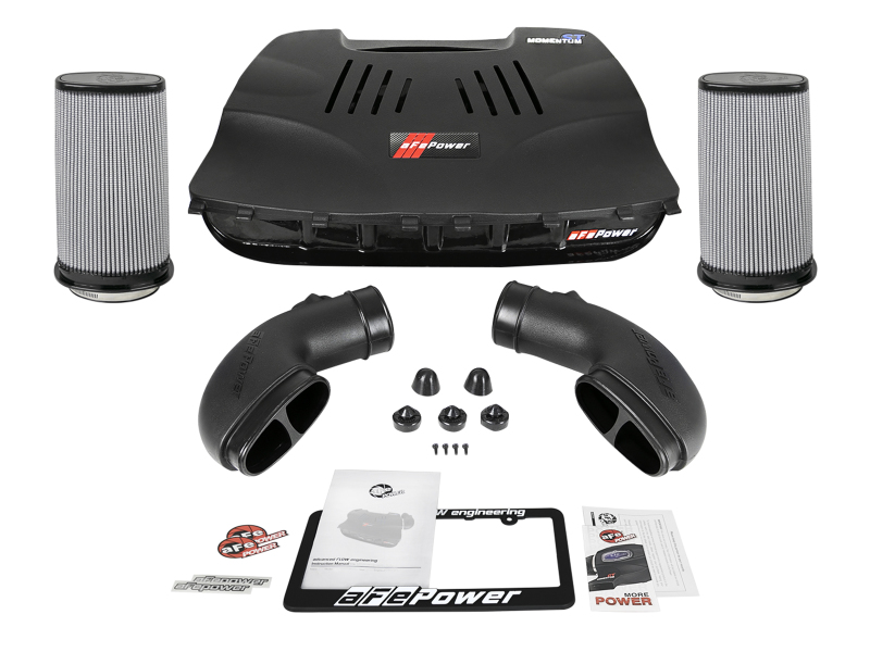 The smooth one-piece sealed housing is used to eliminate the use of multiple-piece housings and ensure the coolest air intake charge available. This System uses a CAD designed, dyno-tuned, roto-mold intake tube to achieve maximum power gains while maintaining a perfect fit. The Momentum ST intake is designed around an oil-free, large 9″ Tall conical flat top 360 degree radial flow performance air filter with 3-layers of progressive finer porosity synthetic media providing maximum convenience. The unique air filter-to-housing interface (patent pending) allows for maximum filter size which increases the available air volume while simplifying the installation process. Premium stainless steel worm gear clamps and a silicone coupler are used for strength and durability while also providing the most secure installation available. Momentum ST intakes are designed with fewer parts for a quick and simple installation.