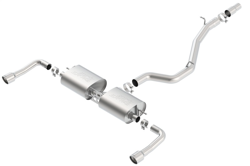 System features polished T-304 stainless steel tips. BORLA(r) Cat-Back(tm) & Axle-Back exhaust systems feature patented straight-through and multi-core technology designed to unleash hidden horsepower. Increased exhaust velocity adds power, driving excitement, fuel economy, and the distinctive BORLA(r) Sound of Power respected by motoring enthusiasts everywhere. Each system is built from premium T-304 stainless steel, superior to T-400 series knockoffs (such as 409), to give you the absolute best in performance and durability. Ultra-smooth mandrel bends ensure maximum flow & power, and precision computer-controlled CNC manufacturing ensures an accurate fit. Best of all, BORLA(r) stands behind every system with a Million-Mile Warranty. Just what you’d expect from the world’s most experienced (and most winning) exhaust brand.