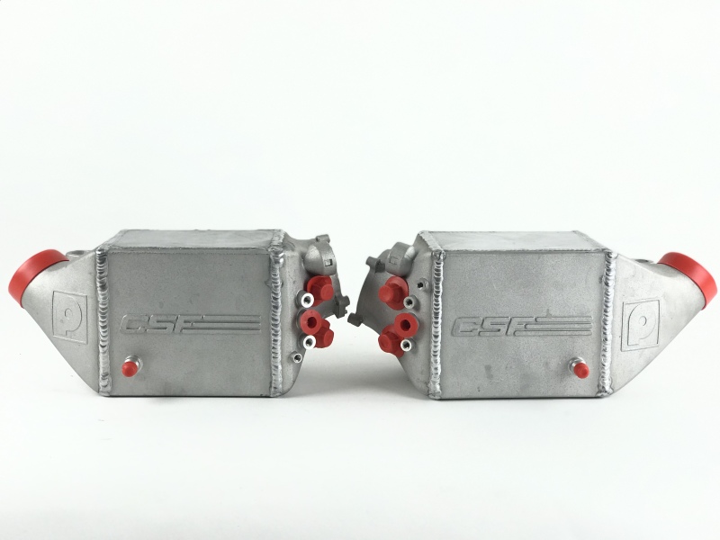 The S63 4.4L Twin Turbo V8 in the BMW F1X M5/M6 is an absolute monster that responds incredibly well to bolt-on upgrades, larger turbos, and performance tuning. Tuners quickly found that increasing power on the S63 pushed charge air temperatures past the OEM Charge-Air-Coolers’ limits resulting in dangerously high Intake Air Temperatures (IATs). Pure turbos approached CSF to develop a Charge-Air-Cooler upgrade that would hold up to the extreme boost levels their turbos upgrades could generate and keep the car’s IATs in check. The result was the World’s 1st Cast End Tank Designed High-Performance Charge-Air-Cooler Set for the F1X M5/M6. CSF used CFD analysis and testing to create the largest charge-air-cooler that could fit in the factory location. The Top/Bottom, Cross-Flow, Dual-Pass Cores are 28% larger than the factory coolers and offer significant reductions in IATs at increased boost levels.