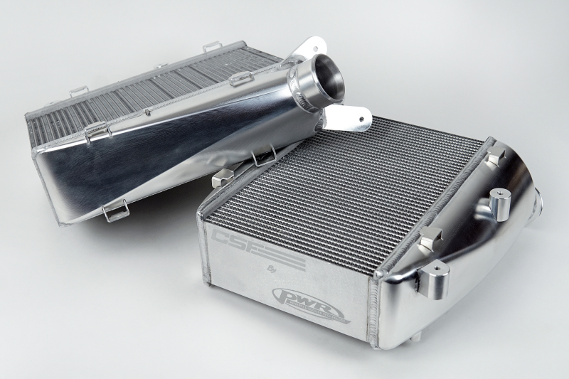 The CSF by PWR C8 RS6/RS7 Twin Intercooler Set features Formula-1 grade cores which offer the greatest reduction in IATs and help eliminate heat soak. The Billet Aluminum construction offers the greatest strength and durability possible.