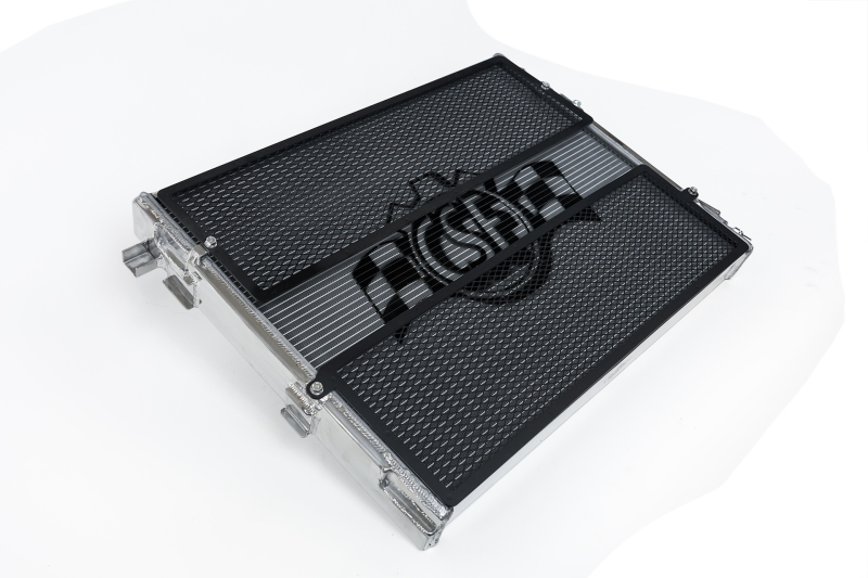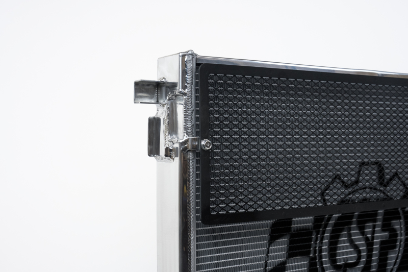 The CSF Heat Exchanger features a 2-Row (vs OEM single row) Core that is 42mm thick with CSF’s Exclusive B-Tube Technology. Increasing the size of the core and end tanks adds to the overall volume of the system which helps absorb more heat. The more efficient core not only helps dissipate more heat from the system, but also provides better airflow into the radiator that sits behind the heat exchanger. For vehicles equipped with the ZF8 Automatic Transmission, the heat exchanger core specifications were design concurrently with CSF’s new Race-Spec Dual Core Transmission Oil Cooler (CSF #8221). The two included Black Rock Guards offer full protection for the heat exchanger (above and below the crash bar), especially when paired with aftermarket “open face” race style grilles. These grilles have become quite popular for performance and aesthetics, and keeping your heat exchanger safe from debris is very important. With well over 100 track hours worth of testing and thousands of miles on the road, you can be assured that the CSF’s new High-Performance Front Mount Heat Exchanger has been thoroughly tested and vetted.