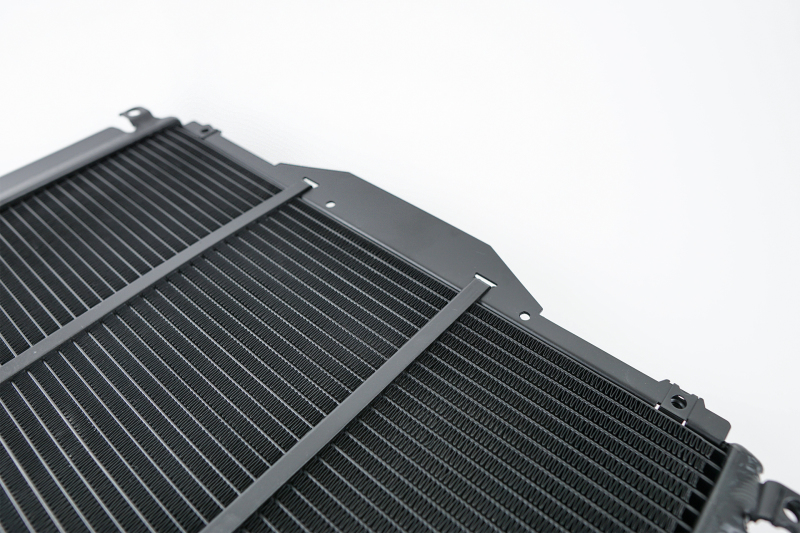 The CSF radiator features a 1-Row 31mm aluminum core that not only increases the fluid capacity of the radiator, but also improves the cores ability to dissipate heat. CSF’s Exclusive B-Tube Technology increases the heat transfer by approximately 15% over regular oval welded tubes. The 6.5mm super-efficient multi-louvered fins maximize airflow through the core for the best possible performance. In addition, CSF was able to fit 2 additional cooling tubes and rows of fins. The combination of TIG-Welded 100% All Aluminum construction and dual core straps increase the overall strength of the radiator. This improves durability and longevity so you can be confident it will hold up to hard driving conditions. Additionally, the satin black finish gives the radiator a clean OEM look and both radiators are a true Plug-and-Play “Drop-in Fit” application.