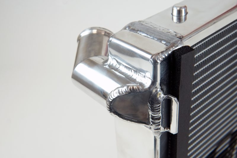 CSF has over 5 decades of experience manufacturing radiators. So when it comes to keeping your engine cool and your 991.2 911 / 718 running at its best, a CSF High-Performance All-Aluminum Radiator is the obvious choice. Designed to perform on the street or at the track, a performance radiator is a must-have for both high horsepower builds as well as race vehicles which need added cooling performance in motorsports environments. This radiator features a 2-Row core with CSF’s exclusive B-Tube Technology: Unlike a regular oval shape “O” type radiator tube, CSF uses a specially engineered tube in the shape of a “B”. These “B-tubes” are carefully formed and then brazed over the seam to seal. CSF is able to use thinner and lighter aluminum material (with better cooling efficiency) because this design is actually stronger than normal “O” shape tubes that are welded. The design (inlet in the middle of the tube that is seam brazed) increases the heat transfer surface area of the tubes by approximately 15% over regular tubes – producing the efficiency of two smaller tubes vs. one large tube within the same space criteria. With “B-tubes” you are able to get “dual liquid laminar flow”. CSF also uses ultra efficient multi louvered fins that are carefully and precisely aligned to maximize airflow through each radiator core. Fin specifications are carefully measured and calculated for each application, and tested for maximum heat rejection efficiency in our wind-tunnel lab.