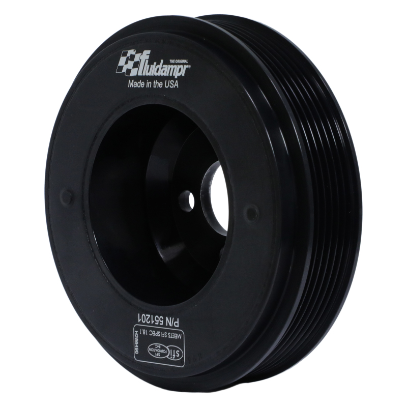 Protect your engine. Modifications can compromise your stock harmonic balancer. Install a Fluidampr performance damper early for best durability. Superior viscous damper design controls harmful torsional vibration across the entire rpm range. Reduce wear on engine components. Reduce risk of crankshaft failure. Improve timing. Unleash lost torque and horsepower. Precision CNC machined and balanced high-grade steel components. Corrosion resistant black zinc finish with engraved timing marks. No maintenance required. Trusted by leading engine builders worldwide. SFI 18.1 certified. Made in USA.