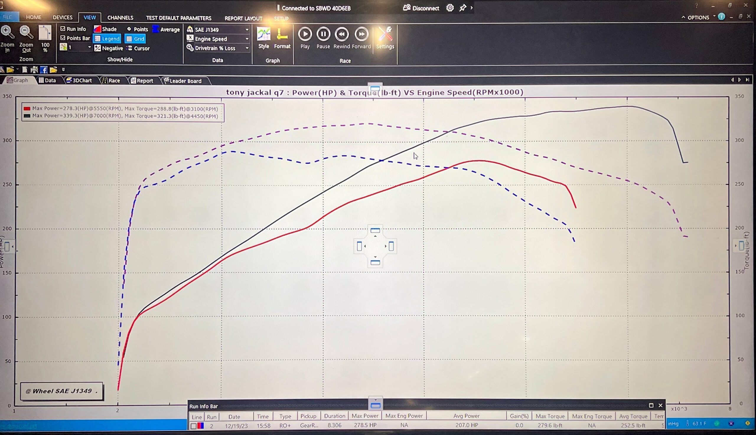 NOTE: These figures were made with JUST a 57mm bolt on supercharger pulley and an intake (Lower crank pulley, and or dual pulley set up will make MORE power, figures will be updated shortly) These numbers are over stock on the dyno we use.