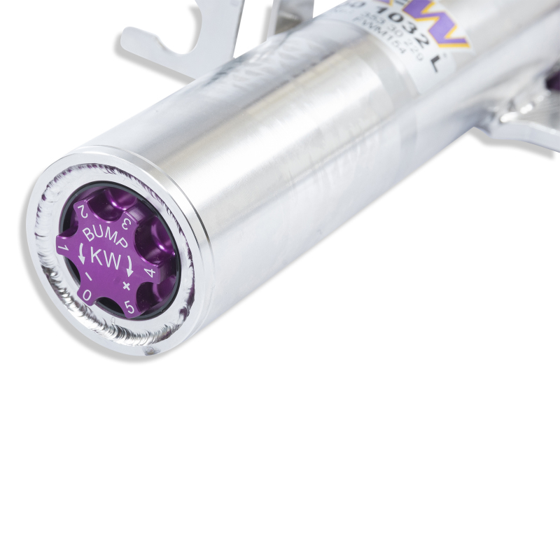 Unparalleled street performance bred from motorsports heritage, the patented KW-valve technology -or the separate Adjustment -f rebound and compression damping, allows you to individually adapt the vehicle-specific base setup.