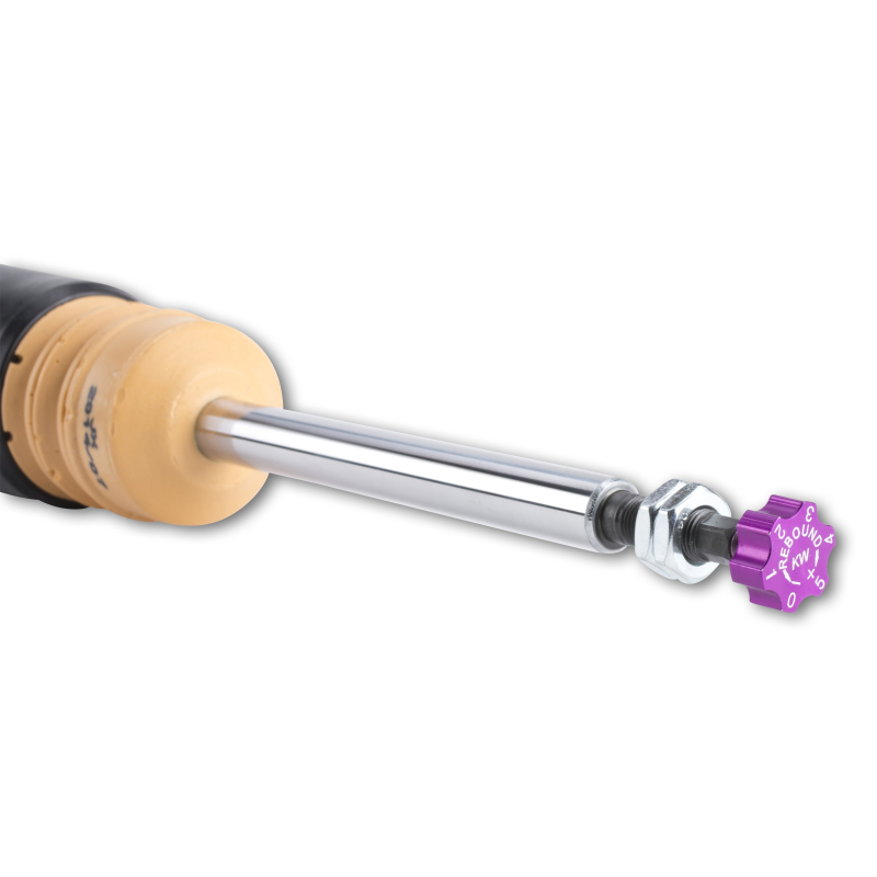 Is your factory sport suspension too firm? Do you want a sporty look and driving dynamics without having to compromise comfort? KW V2 comfort coilovers take the already stellar ride and reputation of KW suspensions coilover systems to the next level of comfort. Designed specifically to maximize comfort KW V2 Comfort coilovers provide a subtle lowering with adjustable ride height and rebound damping adjustability allowing the handling or the comfort to be individually tailored as desired via the integrated rebound adjustment knobs. KW V2 Comfort coilovers offer the perfect compromise of driving dynamics and ride comfort. With the KW V2 Comfort coilover kit, your comfort-oriented driving pleasure is the focus. That’s why our test engineers evaluate the setups on numerous highways and country roads with various road surface types. The KW V2 Comfort coilover kits are suitable for all drivers who want to combine the joy of a decent lowering with driving comfort. With the 16-click adjustable rebound damping (TVR-A-technology), you can tune the KW dampers on the KW V2 Comfort coilover kits to make it more comfortable or sportier. The two-stage, patented TVR-A (Twin Valve Rebound – Adjustable) technology enables a small volume of oil to flow through an adjustable, conically shaped, low-speed bypass during low damper speeds, while in the case of higher damper speeds, the main rebound stage valve opens allowing a larger volume of oil to flow. This provides a big improvement in terms of ride comfort without influencing the safety-relevant high-speed range. There are 16 precise clicks available for individual settings, so you can choose between more comfort or more body control. The KW V2 Comfort coilovers, made using INOX-LINE stainless steel technology, enables a vehicle-specific lowering within the tested adjustment range of 10 to 40 mm.