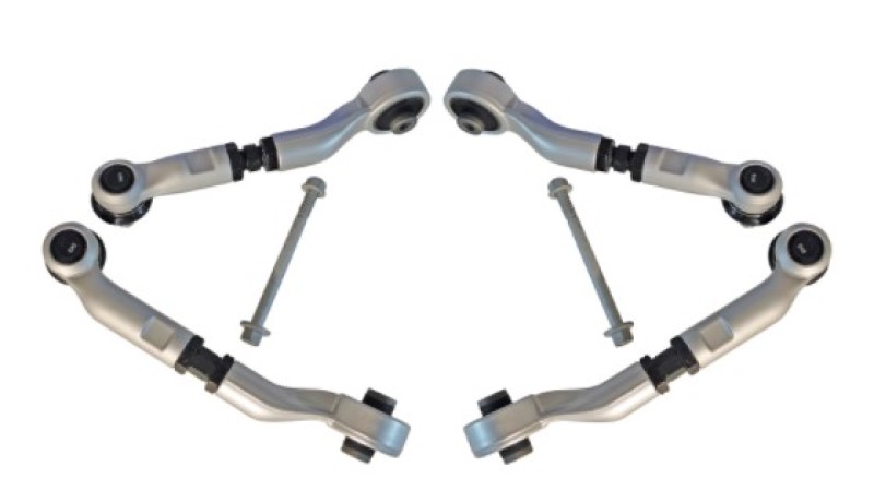 Adjust front camber and caster +-1.5deg on the Audi B9 platform with these forged aluminum adjustable control arms from SPC. OE style booted ball joints and bonded rubber bushings maintain factory ride, handling and noise, vibration, & harshness (NVH) parameters. Audi’s unique multi-link suspension creates a ‘Virtual’ SAI. The factory does not publish a specification for caster, but SPC recommends 5deg to 6deg of caster as a preferred angle for tracking and return to center on these cars. For the left hand (LH) side, use #81381. For the right hand (RH) side, use part number #81382. Want to be able to adjust both sides? Use part #81383. Forged 6061-T6 Aluminum construction for maximized strength at minimum weight OE style, maintenance free, bootedball joints Large 18mm threaded adjuster links Replacement pinch bolts included California Residents WARNING