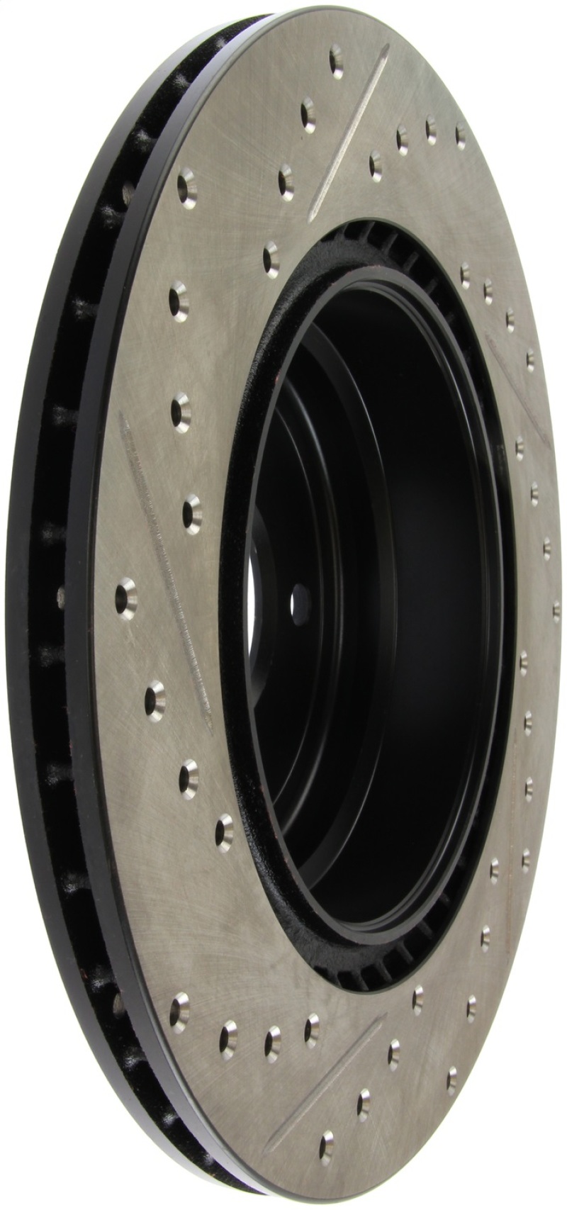 StopTech Drilled and Slotted Sport Rotors are 1-piece direct replacement brake discs for factory brake systems and stock calipers that look great behind your wheels a** and offer significantly improved braking performance. The unique cross-drilling and slotting aids with heat and brake dust dispersal; prevents glazing of the pads; adds bite and improves wet and dry braking performance. Built to last; the black e-coating provides protection from corrosion and the high carbon metallurgy (in most applications) offers quieter operation; better crack resistance and increased performance.