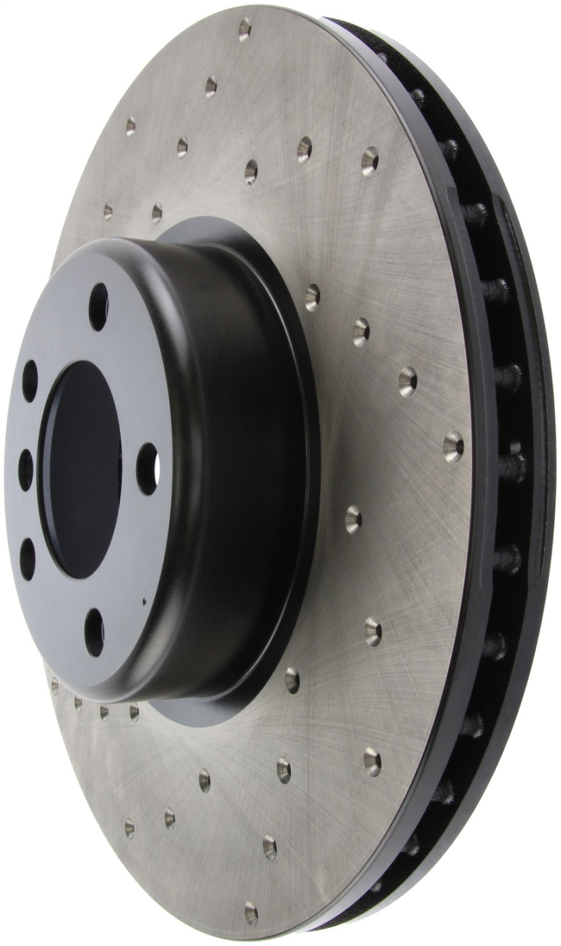 StopTech Drilled Sport Rotors are 1-piece direct replacement brake discs for factory brake systems and stock calipers that look great behind your wheels a** and offer significantly improved braking performance. The unique cross-drilling aids with heat and brake dust dispersal; prevents glazing of the pads; adds bite and improves wet and dry braking performance. Built to last; the black e-coating provides protection from corrosion and the high carbon metallurgy (in most applications) offers quieter operation; better crack resistance and increased performance.