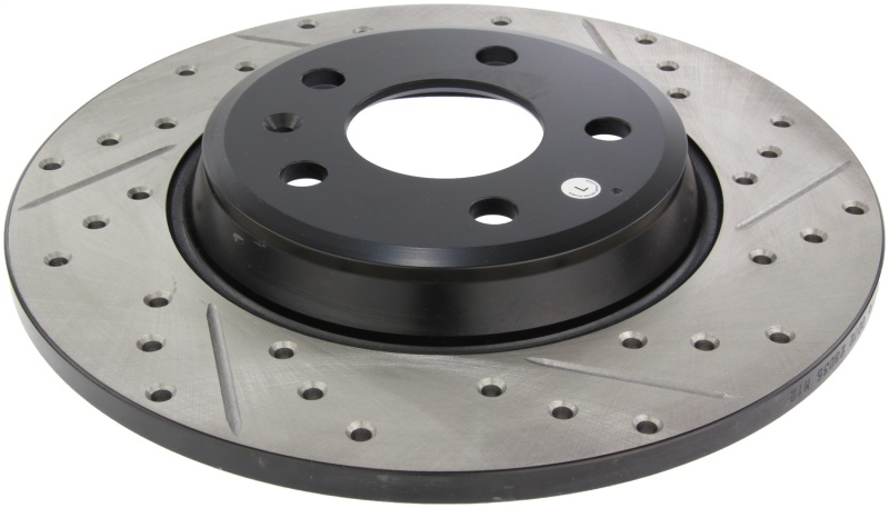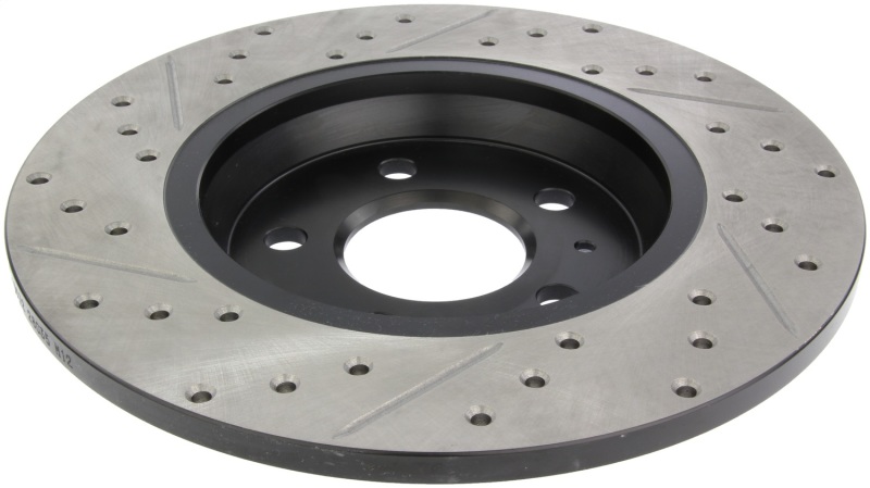 StopTech Drilled and Slotted Sport Rotors are 1-piece direct replacement brake discs for factory brake systems and stock calipers that look great behind your wheels a** and offer significantly improved braking performance. The unique cross-drilling and slotting aids with heat and brake dust dispersal; prevents glazing of the pads; adds bite and improves wet and dry braking performance. Built to last; the black e-coating provides protection from corrosion and the high carbon metallurgy (in most applications) offers quieter operation; better crack resistance and increased performance.