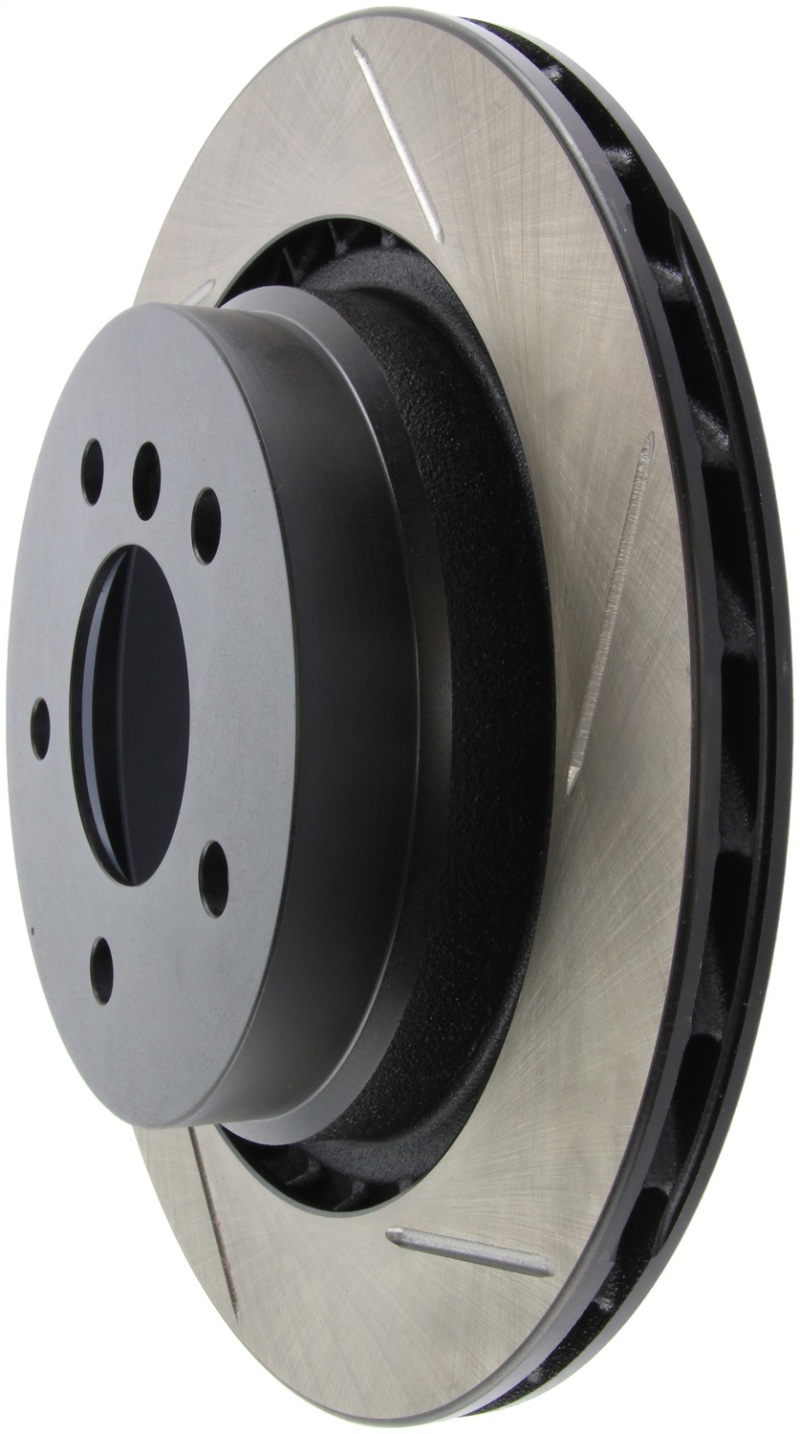 StopTech Slotted Sport Rotors are 1-piece direct replacement brake discs for factory brake systems and stock calipers that look great behind your wheels a** and offer significantly improved braking performance. The unique slotting aids with heat and brake dust dispersal; prevents glazing of the pads; adds bite and improves wet and dry braking performance. Built to last; the black e-coating provides protection from corrosion and the high carbon metallurgy (in most applications) offers quieter operation; better crack resistance and increased performance.