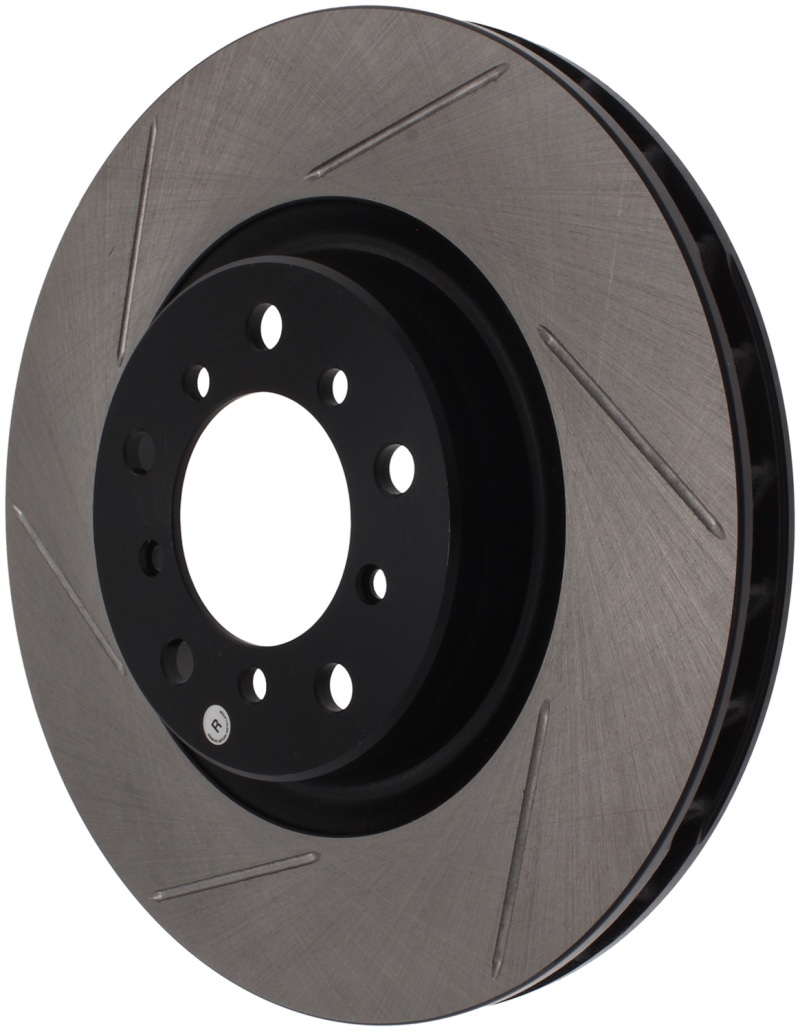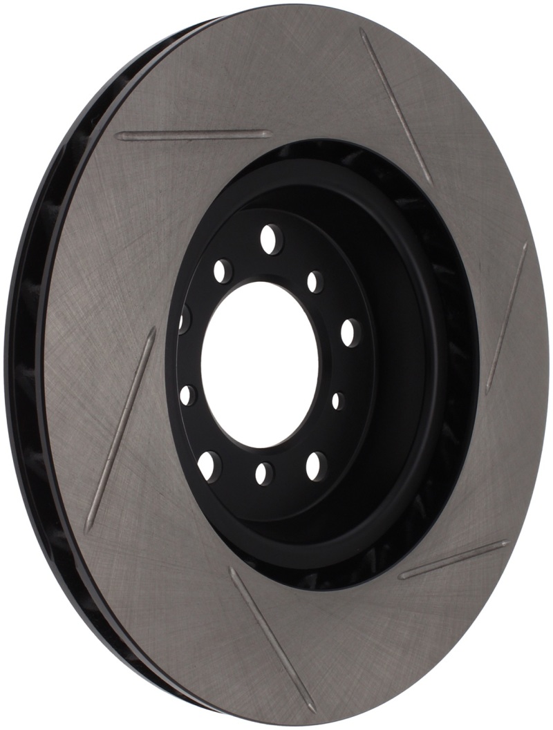StopTech Slotted Sport Rotors are 1-piece direct replacement brake discs for factory brake systems and stock calipers that look great behind your wheels a** and offer significantly improved braking performance. The unique slotting aids with heat and brake dust dispersal; prevents glazing of the pads; adds bite and improves wet and dry braking performance. Built to last; the black e-coating provides protection from corrosion and the high carbon metallurgy (in most applications) offers quieter operation; better crack resistance and increased performance.