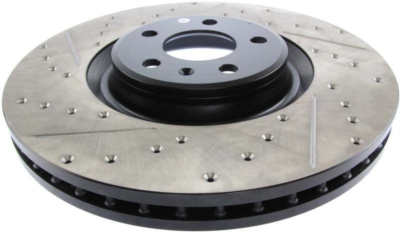 StopTech Drilled and Slotted Sport Rotors are 1-piece direct replacement brake discs for factory brake systems and stock calipers that look great behind your wheels a** and offer significantly improved braking performance. The unique cross-drilling and slotting aids with heat and brake dust dispersal; prevents glazing of the pads; adds bite and improves wet and dry braking performance. Built to last; the black e-coating provides protection from corrosion and the high carbon metallurgy (in most applications) offers quieter operation; better crack resistance and increased performance.