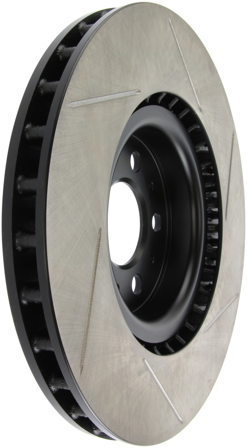 StopTech Slotted Sport Rotors are 1-piece direct replacement brake discs for factory brake systems and stock calipers that look great behind your wheels a** and offer significantly improved braking performance. The unique slotting aids with heat and brake dust dispersal; prevents glazing of the pads; adds bite and improves wet and dry braking performance. Built to last; the black e-coating provides protection from corrosion and the high carbon metallurgy (in most applications) offers quieter operation; better crack resistance and increased performance.