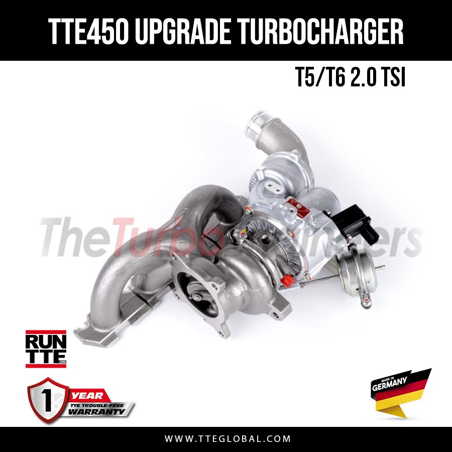 Introducing the TTE450 Ultimate OEM+ Plug & Play Upgrade Turbocharger for the 2.0 TSI T5 / T6 range. Designed for ultra-fast response and high-output performance, this Stage 3 hybrid delivers a significantly wider power band and enhanced driving experience while maintaining full OEM fitment for seamless installation.
